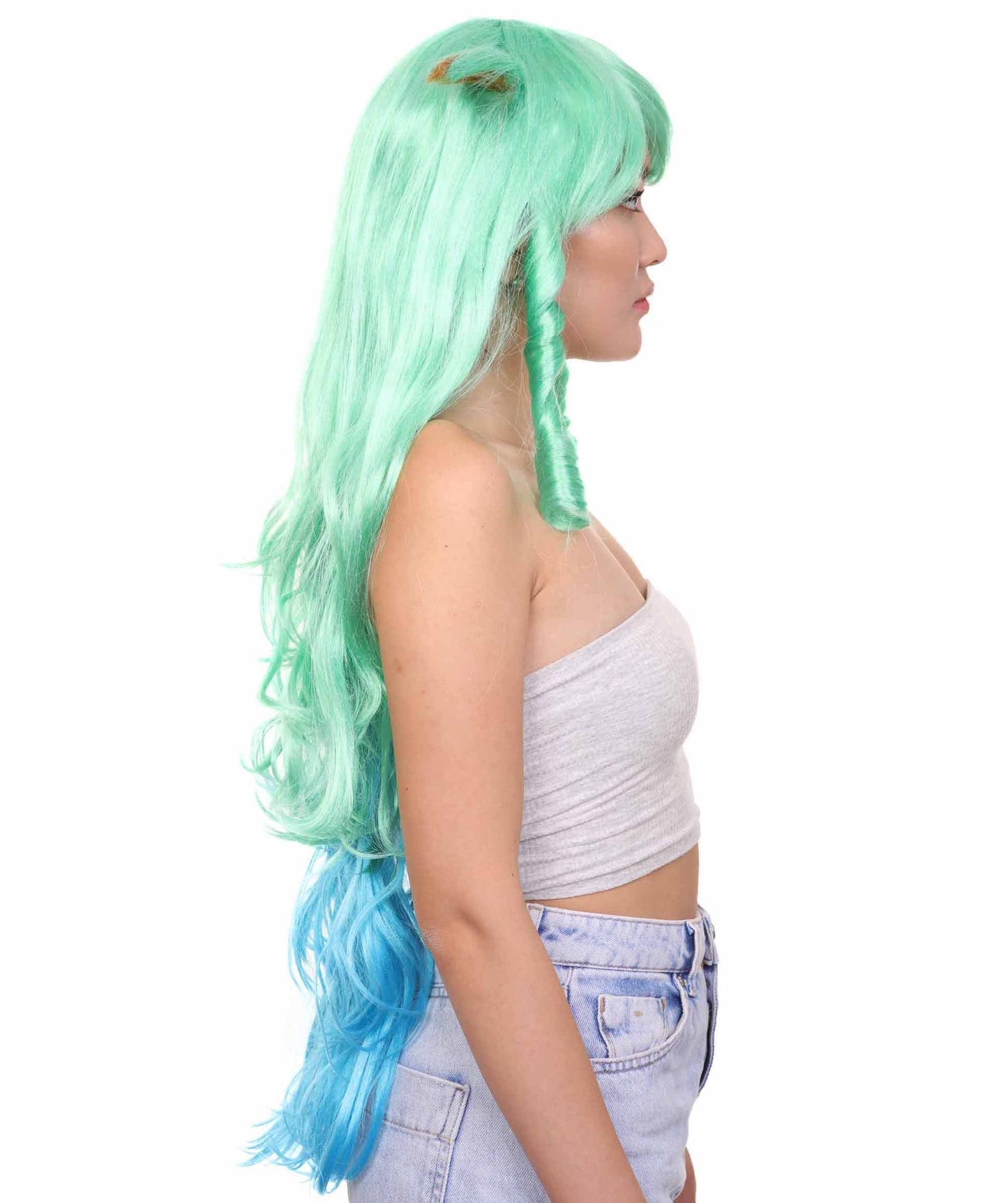 Inspired by an American multiplayer battle game character, this green and blue wig is designed for a perfect cosplaying. Cosplay the Starchild who gave up her immortal life to protect the mortal races from her own more violent instincts. For school cosplay competitions, carnivals, Halloween, or theme parties, this game character wig is suitable for all ages. And if you are a gamer, you must try this item to impress your friends.Green and Blue Anime Wigs