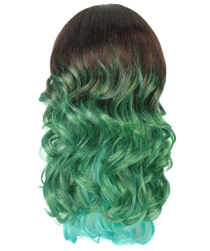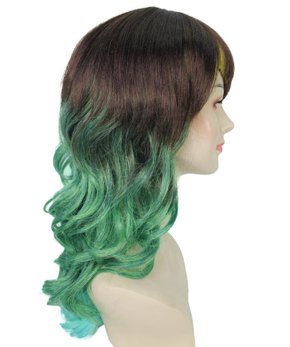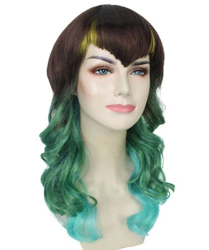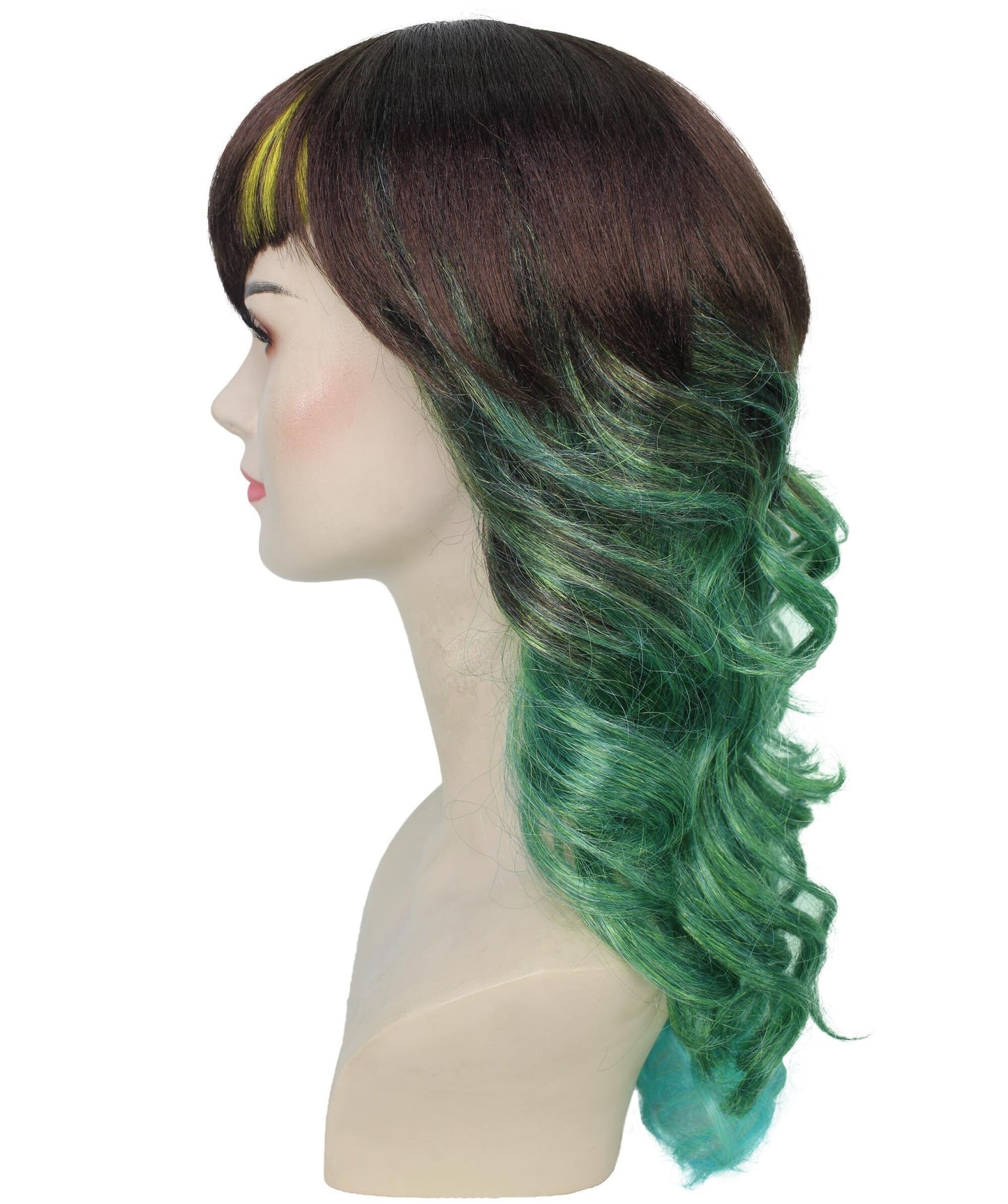 Women's Black and Green Long Wavy Wig I Perfect for Halloween I Flame-retardant Synthetic Fiber