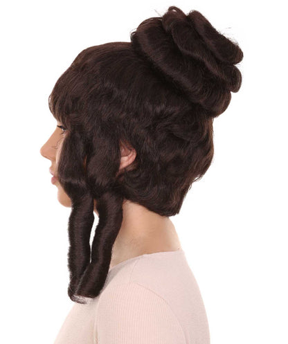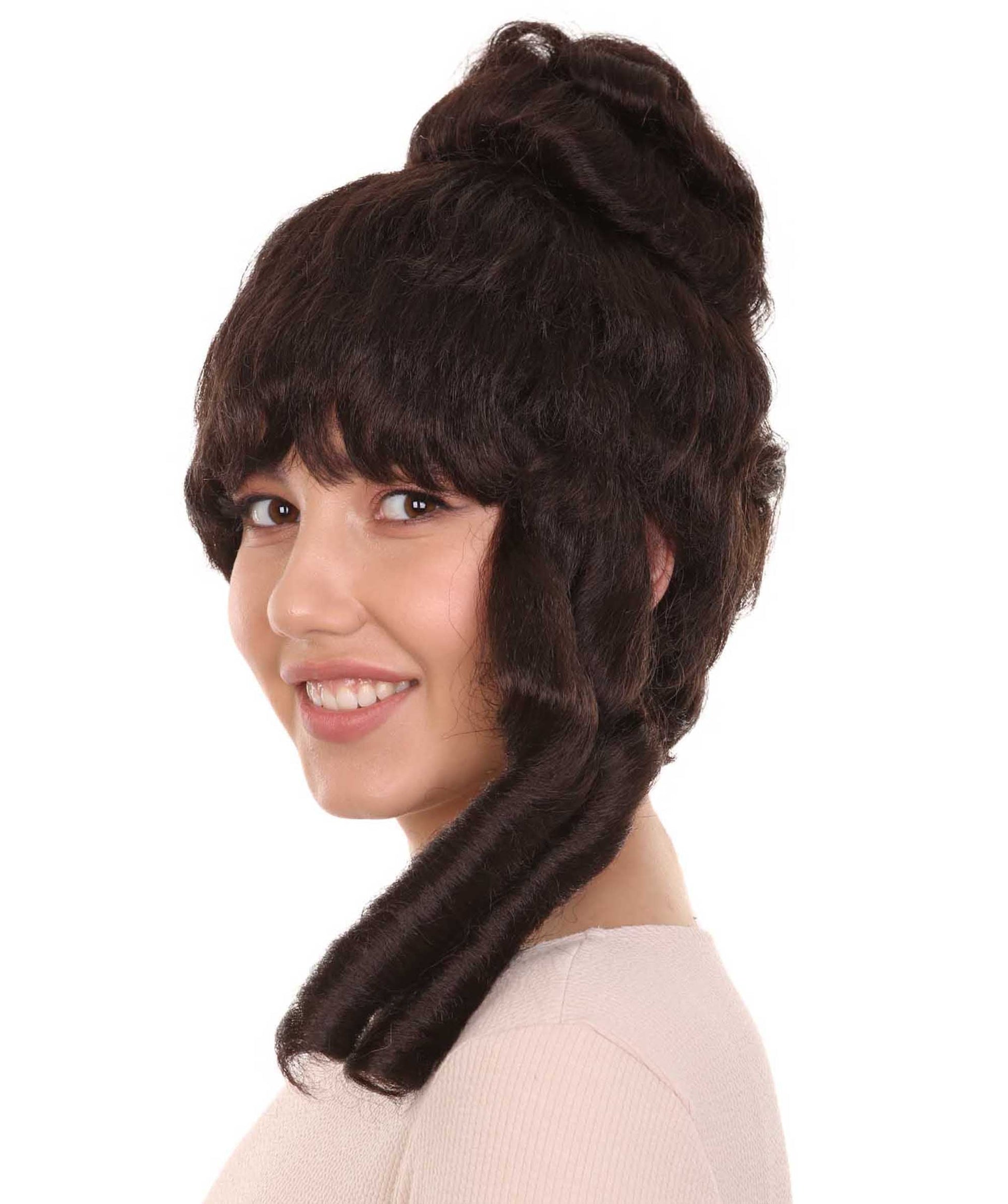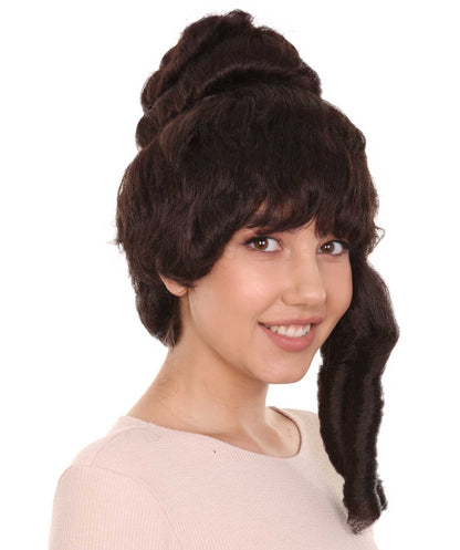 Womens Colonial Ladies 18th Century Curly Wig | Dark Brown Historical Wig | Premium Breathable Capless Cap