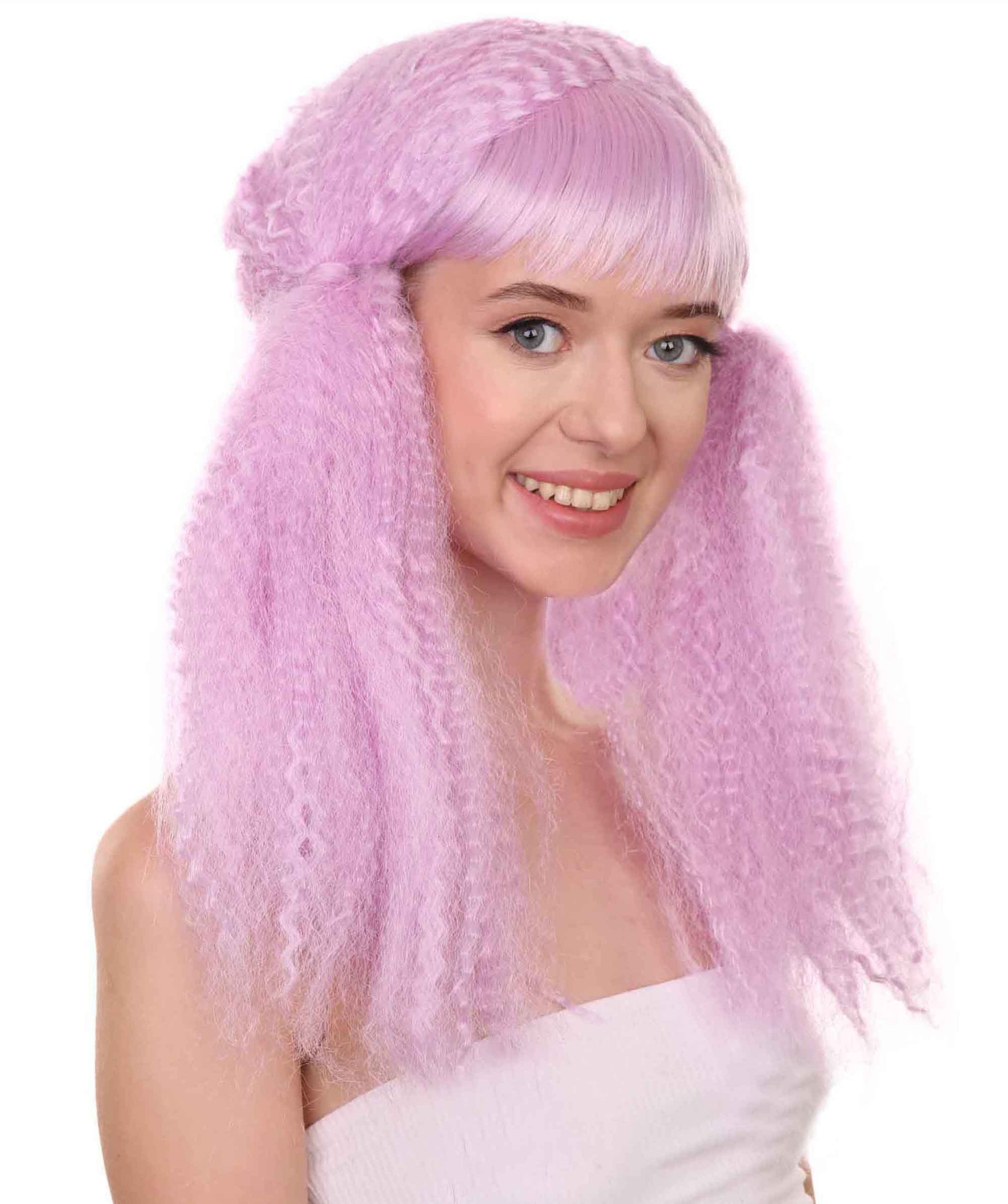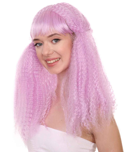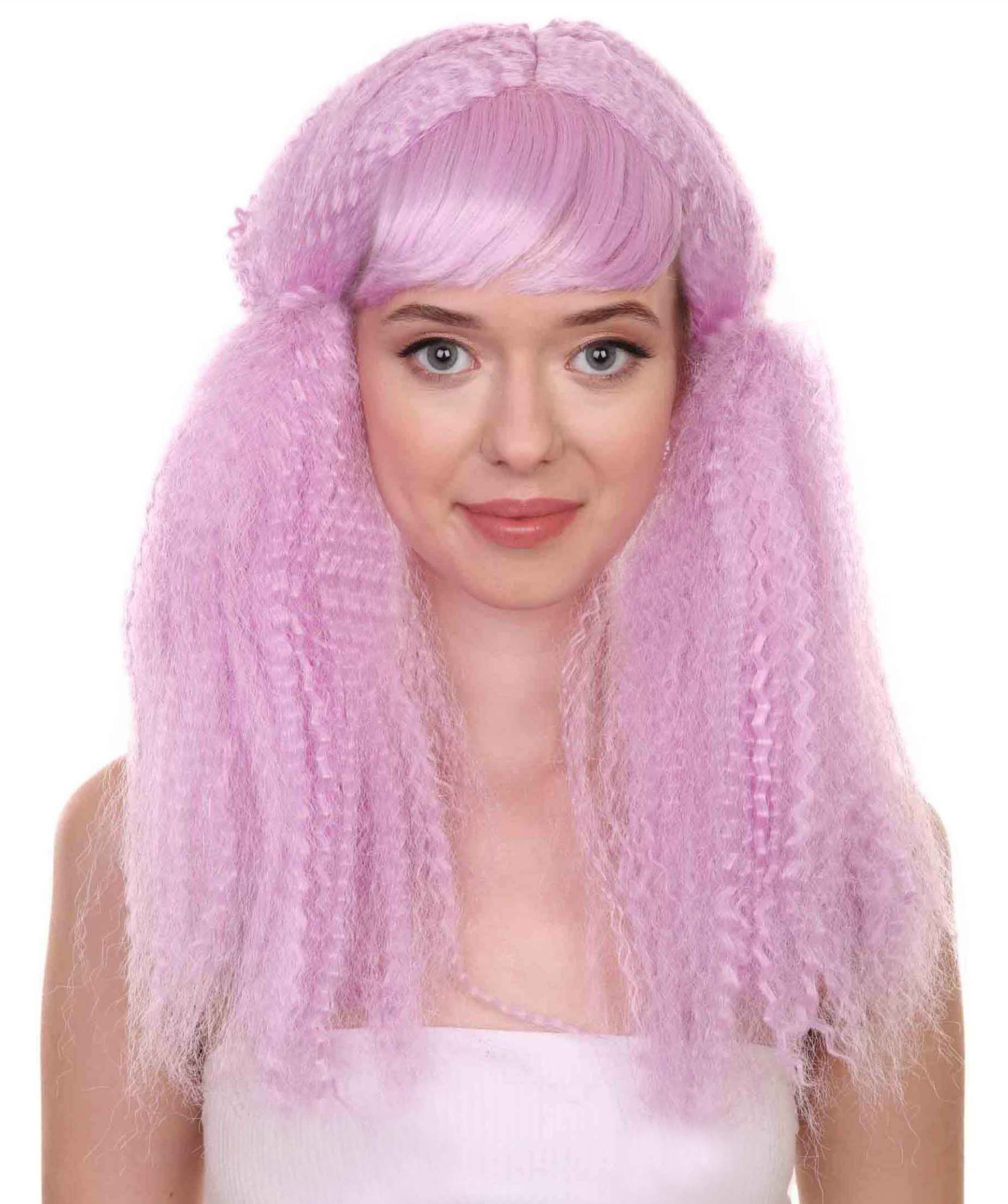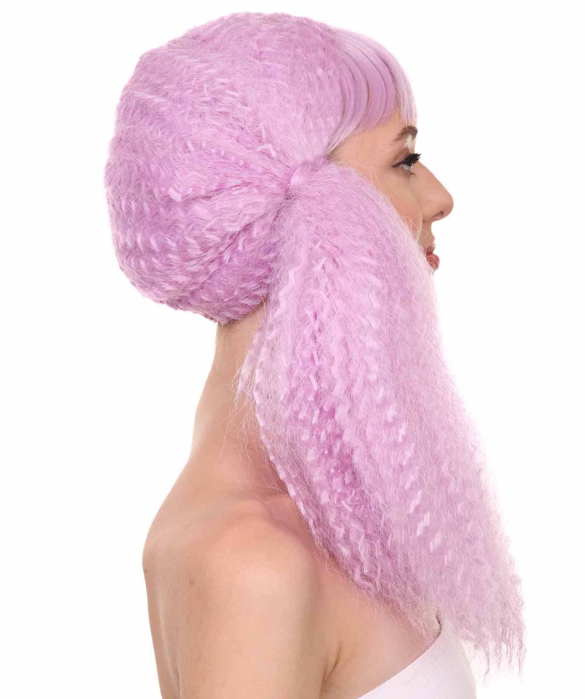 With its long, curly ponytail and bangs, this wig creates a look that is both playful and mysterious. The perfectly curled ponytail adds an extra touch of elegance, while the various color options, from classic blonde to lilac, make it easy to match any costume. Crafted from high-quality synthetic fibers and its lightweight and breathable design ensures that you stay comfortable all night long.