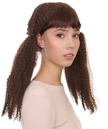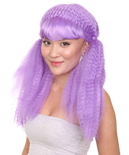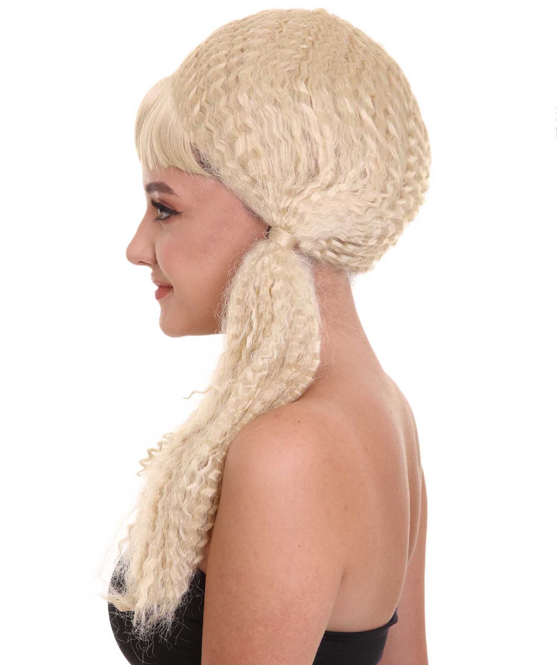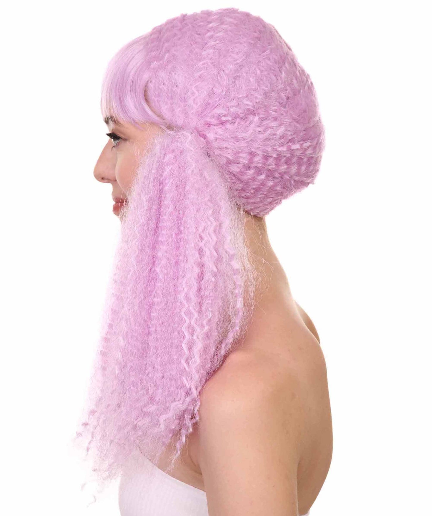 With its long, curly ponytail and bangs, this wig creates a look that is both playful and mysterious. The perfectly curled ponytail adds an extra touch of elegance, while the various color options, from classic blonde to lilac, make it easy to match any costume. Crafted from high-quality synthetic fibers and its lightweight and breathable design ensures that you stay comfortable all night long.