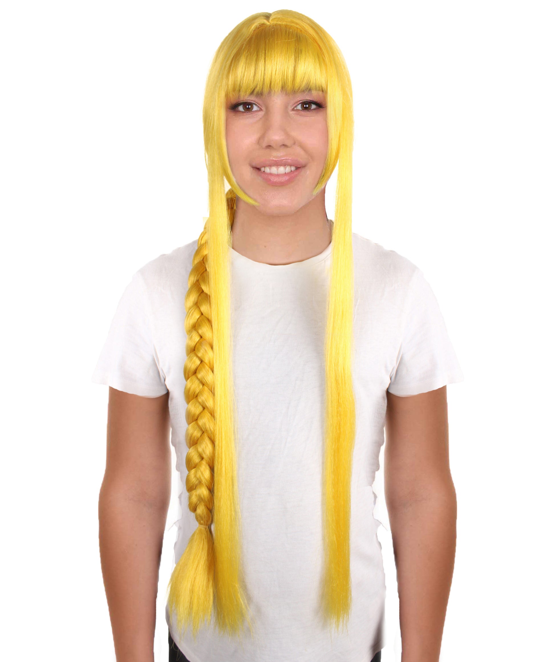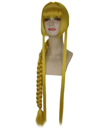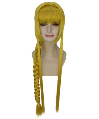 Behold, the Long Blonde Wig—a captivating creation tailor-made for adult women seeking to infuse an extra dose of intrigue into their Halloween, or event personas. This wig, with its luscious blonde braid, draws inspiration from a character deeply embedded in the immersive world of a virtual reality fighting anime. Picture the childhood friend of the main male character, torn away against her will to become the formidable Integrity Knight.