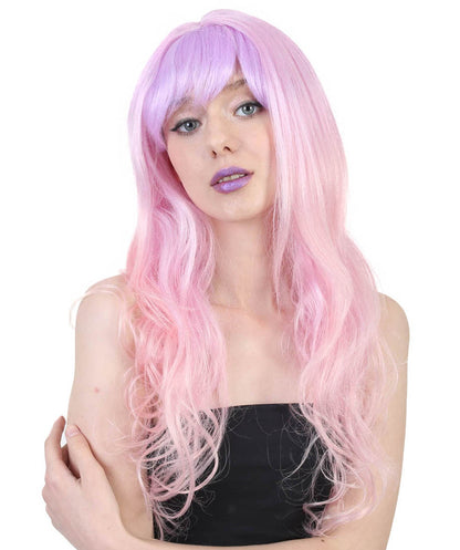 Long Wavy Multicolour Women Wig | Fancy Party Event Ready Halloween Wig | Premium Breathable Capless Cap