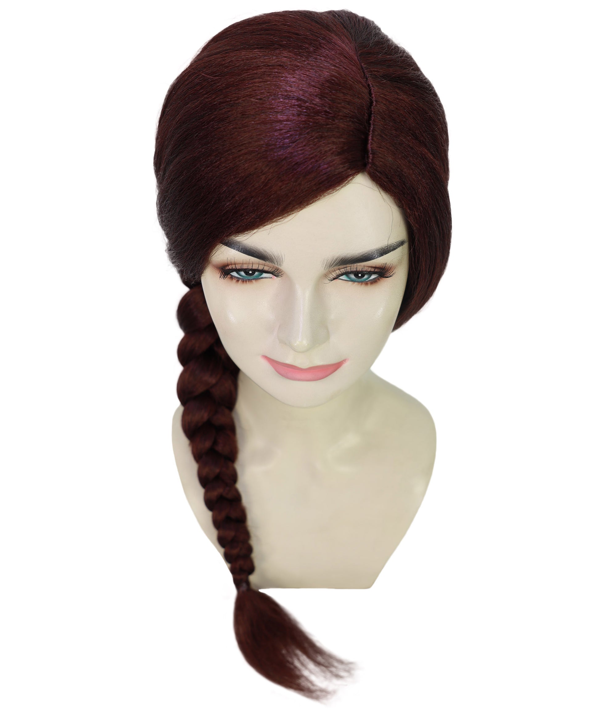Women's Medium Brown Witch-Inspired Long Side Braid Wig | Side-Parted Micro Braid Cosplay Hair for Halloween & Theater Looks