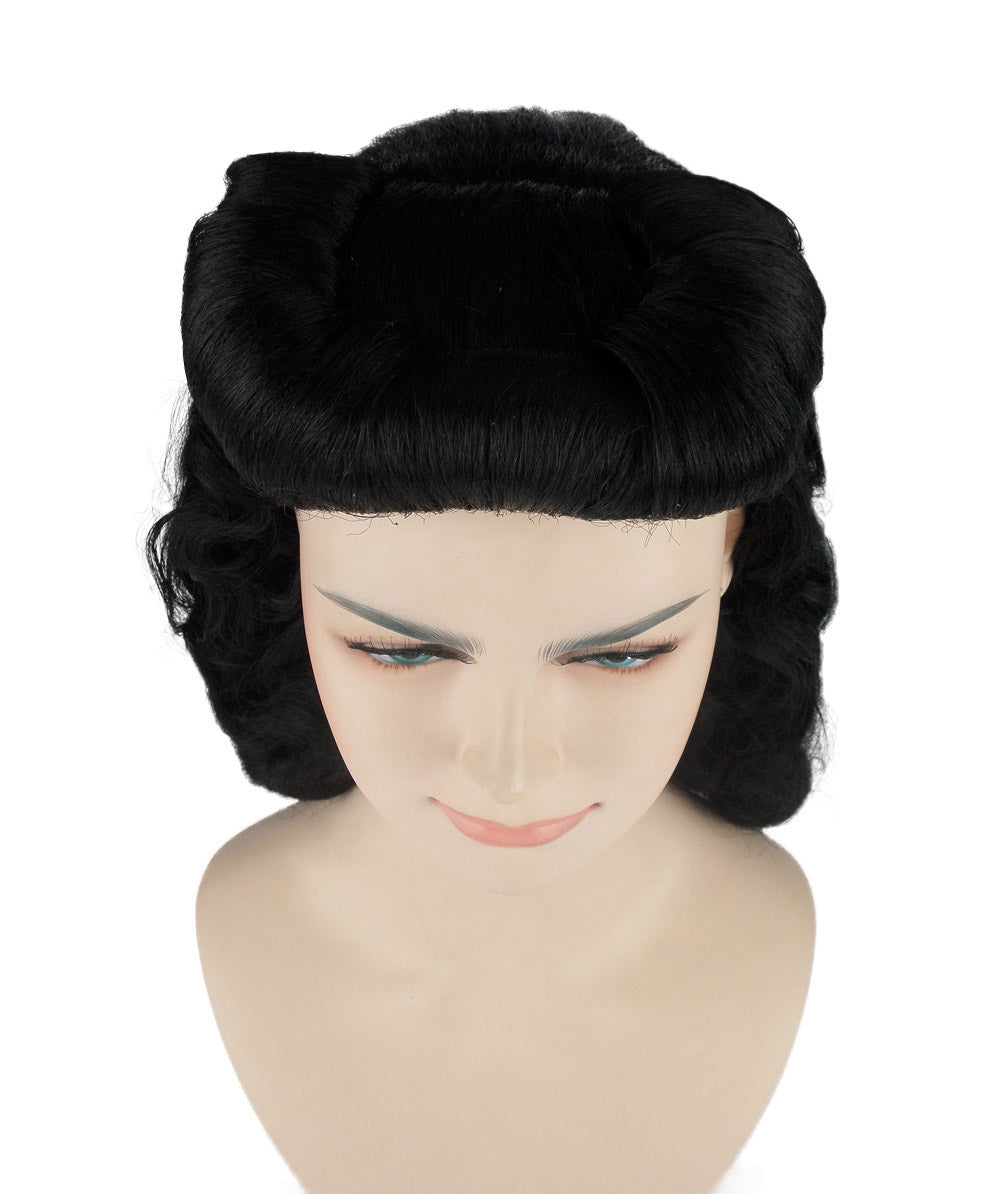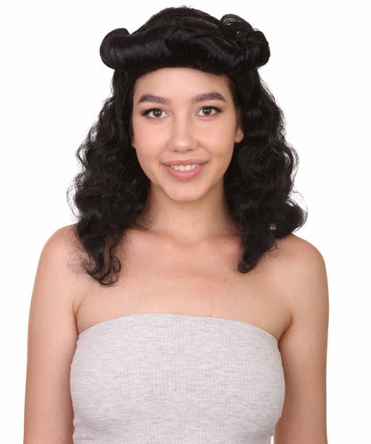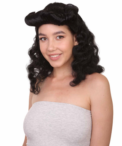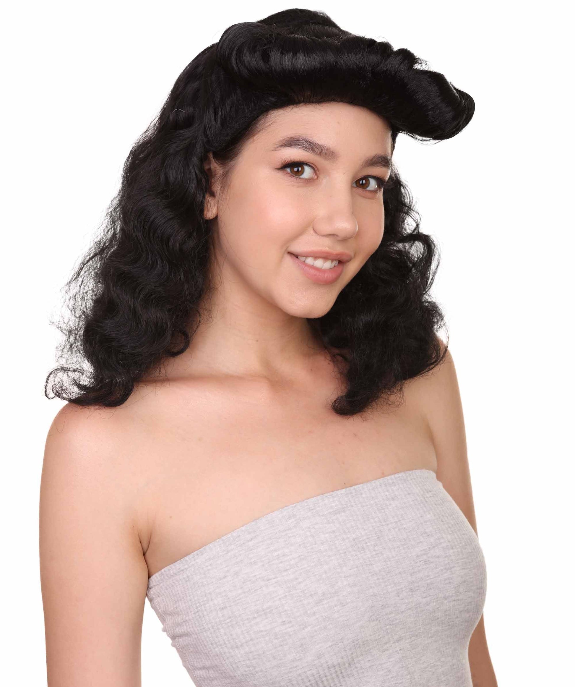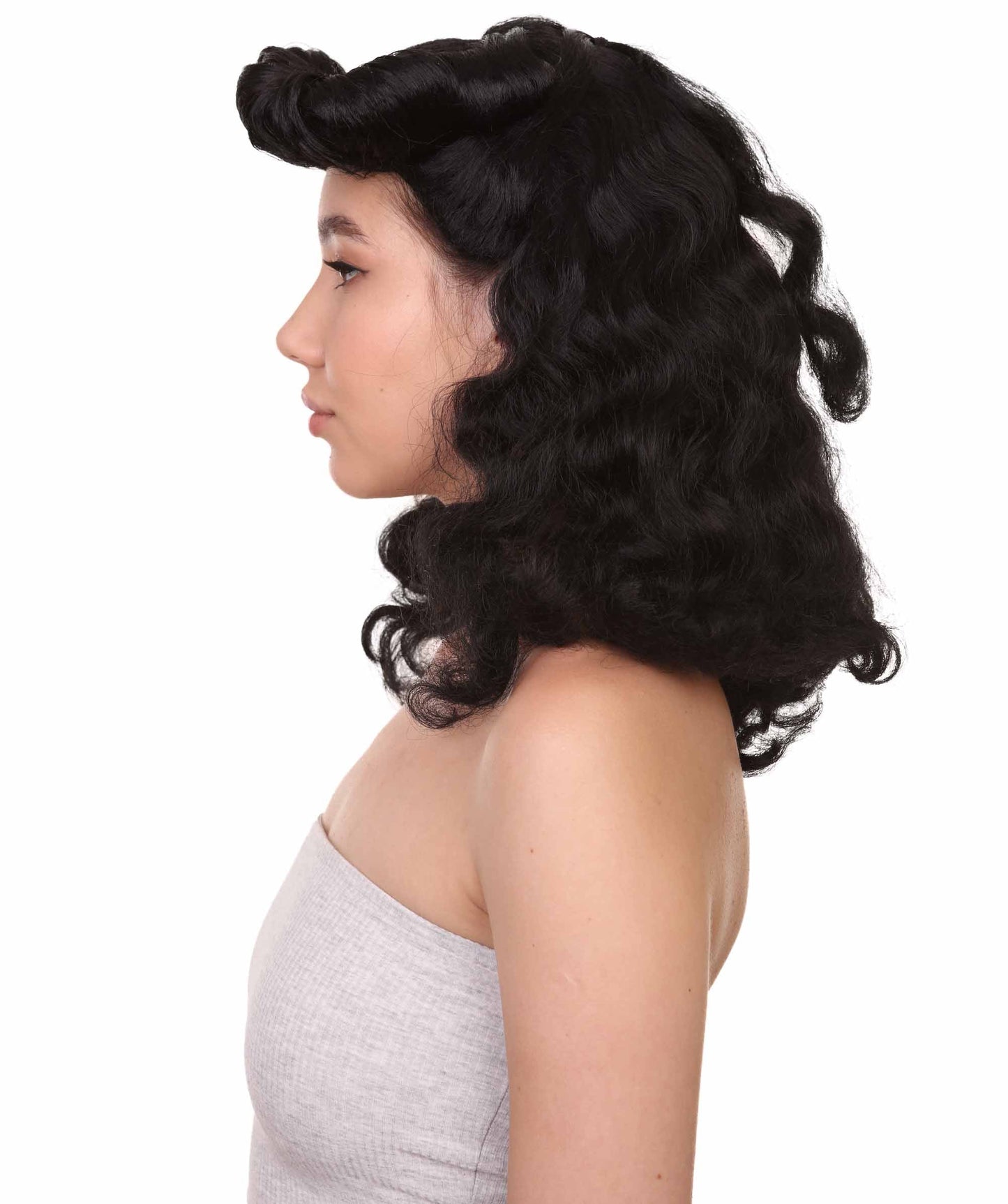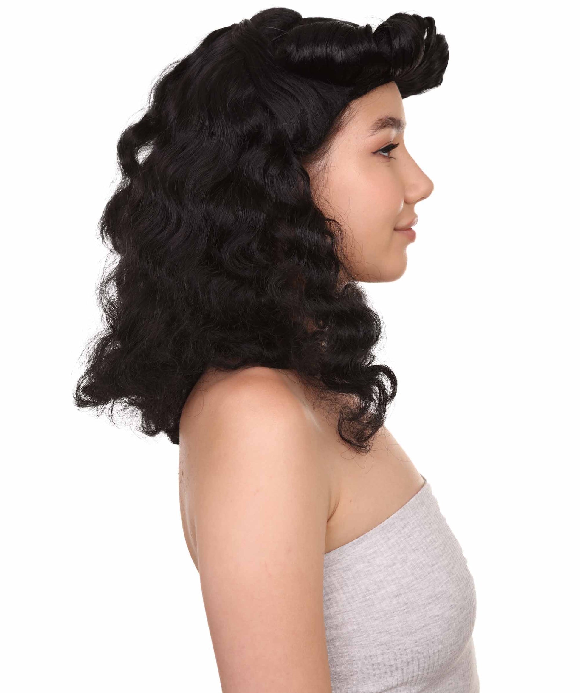Womens Pin Up Wig | Black Party Ready Halloween Wig | Premium Breathable Capless Cap