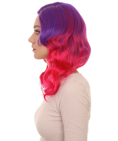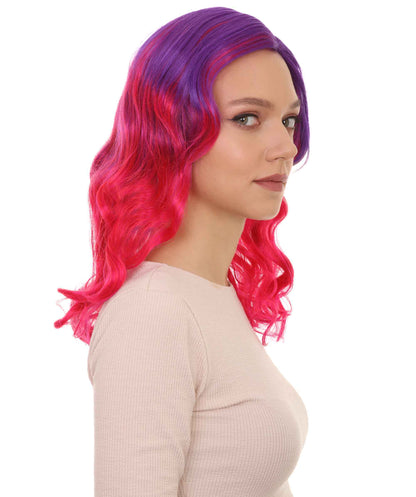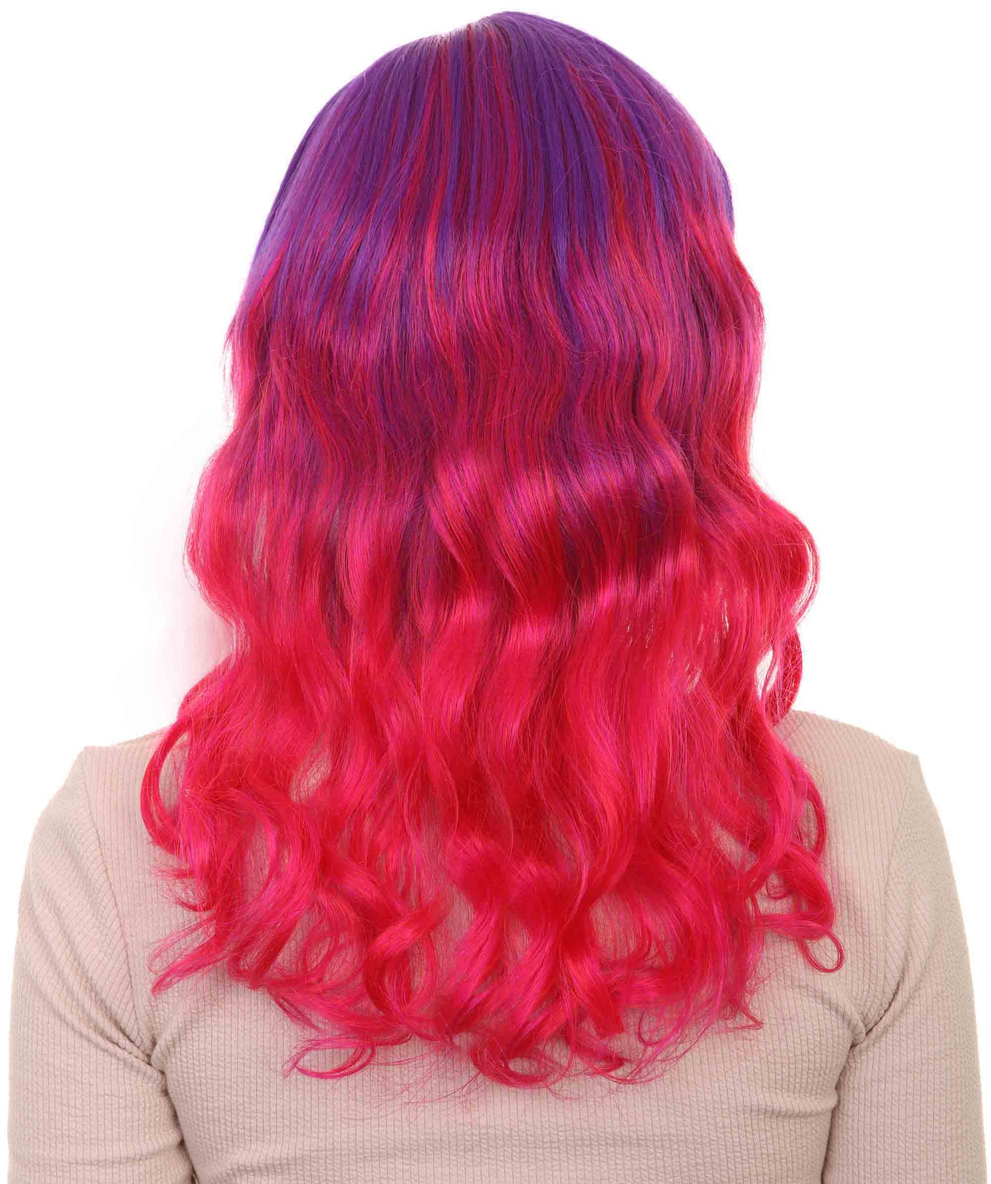 Women's Long Wavy Two-tone Wig | Purple & Pink Colorful Wigs | Premium Breathable Capless Cap