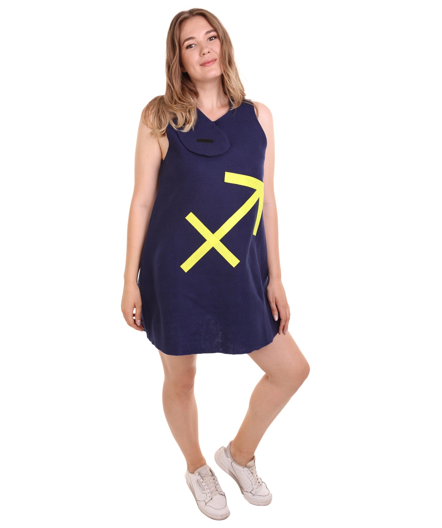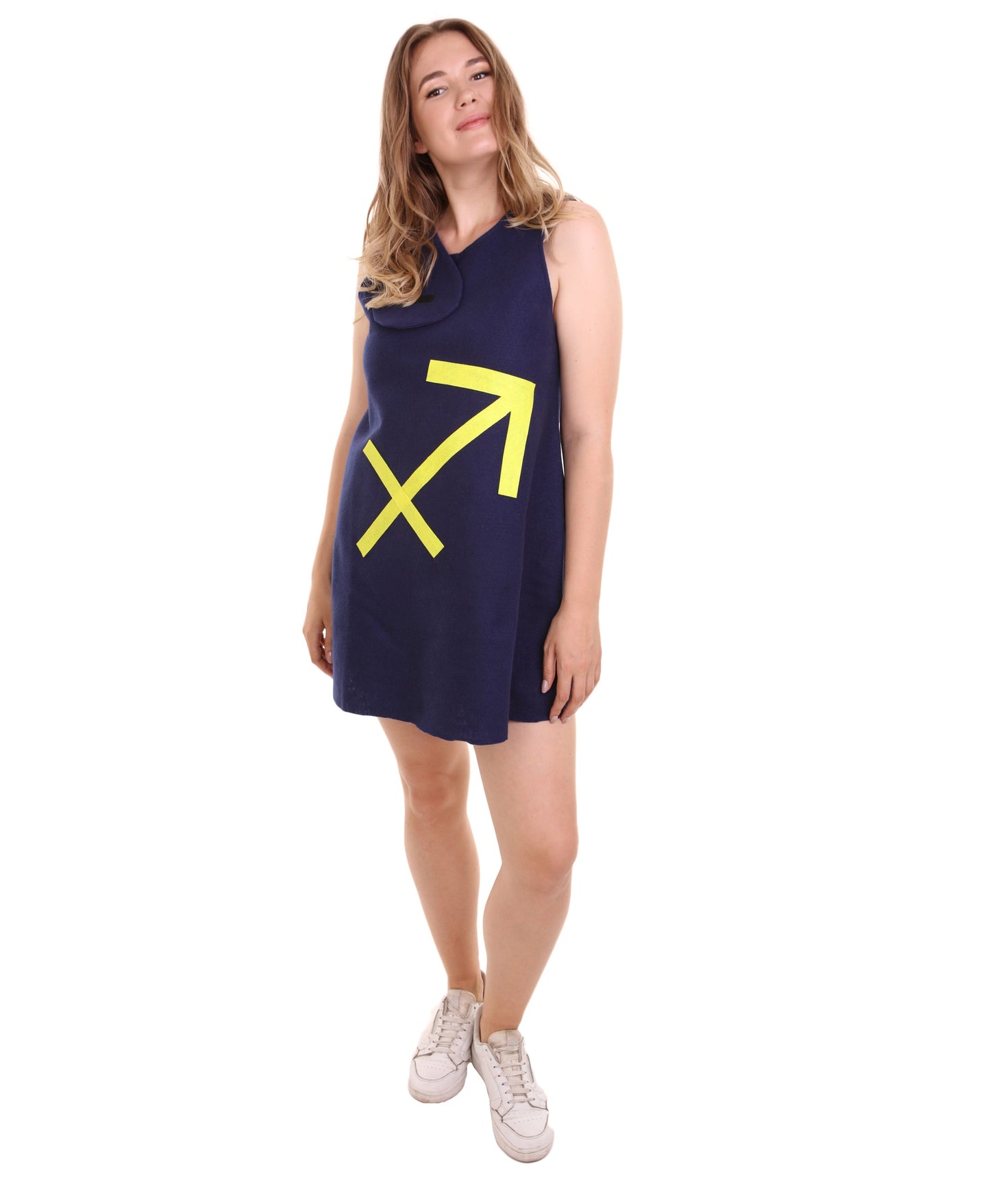 Inspired by the mystical energy of the Sagittarius constellation, this Party Troll Dress Costume captures the essence of the archer’s spirit. This costume features a vibrant blue design adorned with arrows and allows you to dance and celebrate freely.