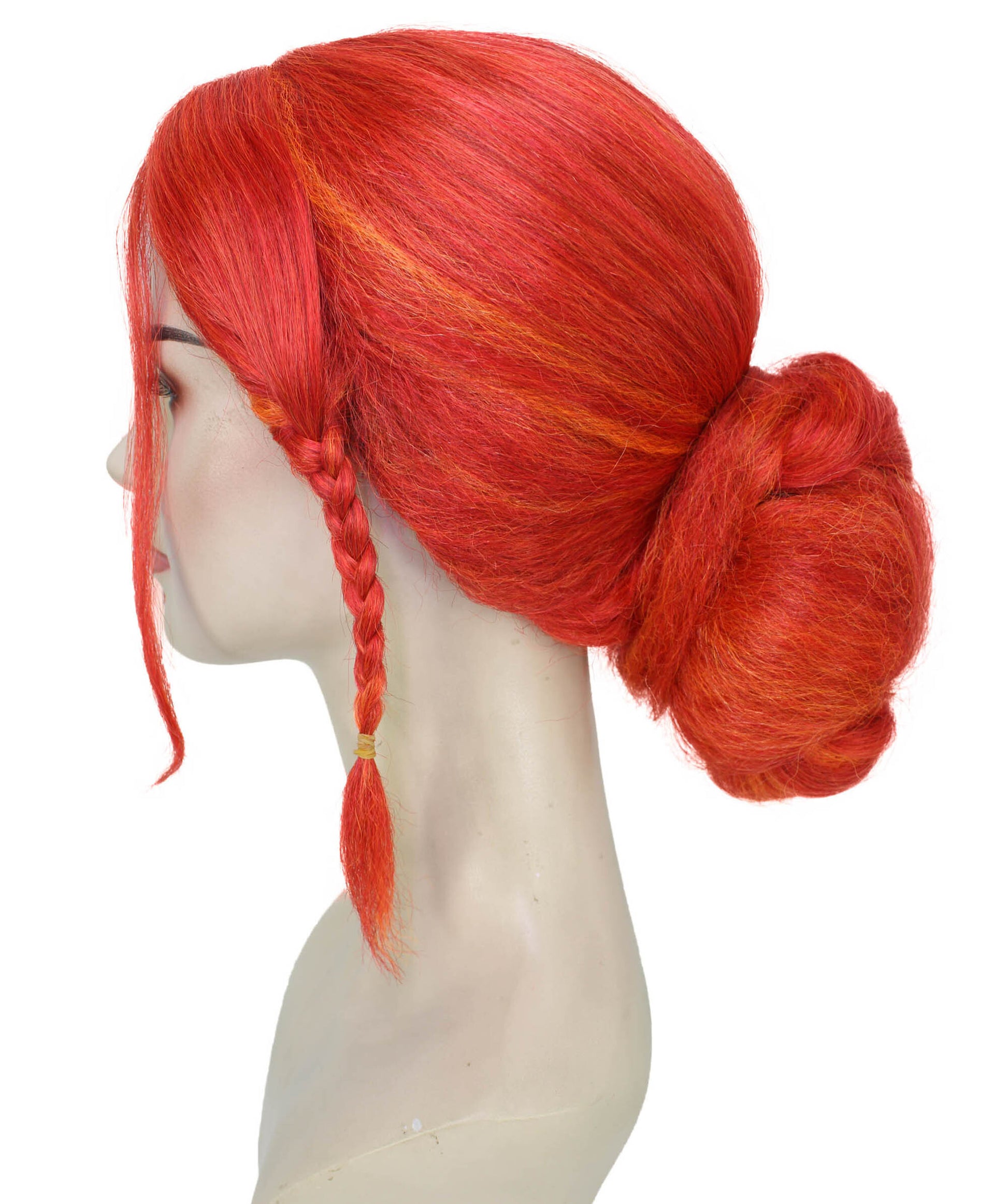 The vibrant red color of the wig and the classic bun style add a dynamic touch, with an extra dose of energy and flair to your overall appearance.
