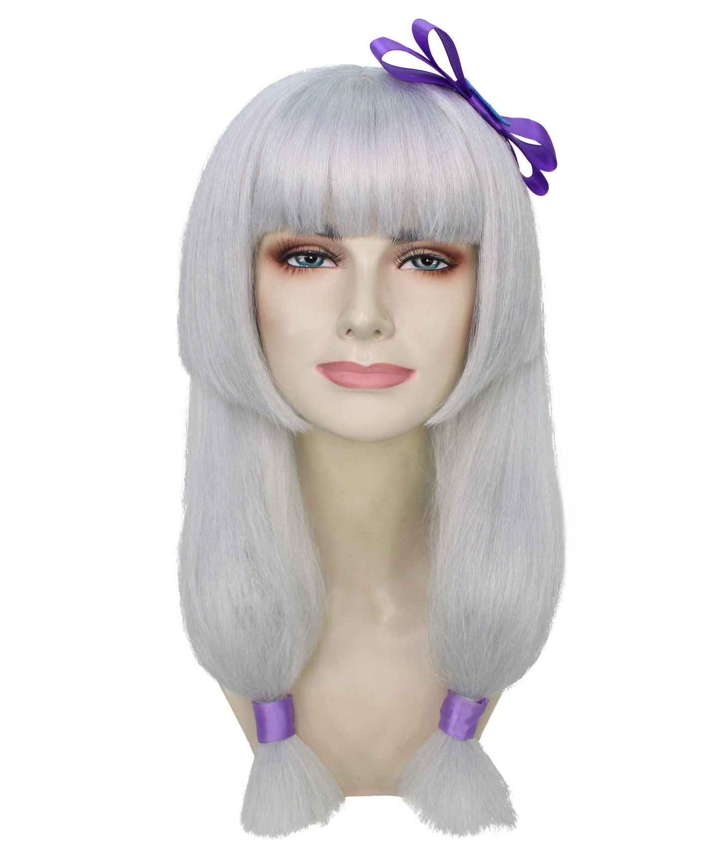 This White Long Anime Wig is an exquisite hairpiece inspired by a gaming character renowned for her unmatched finishing moves. This wig captures the essence of a character deeply skilled in traditional Japanese dance and combat techniques. The character's signature weapon, an umbrella, is wielded with extraordinary finesse, showcasing her remarkable precision in battle. What sets her apart is her ability to summon and command formidable elemental forces, manipulating wind, water, and lightning with astounding proficiency.