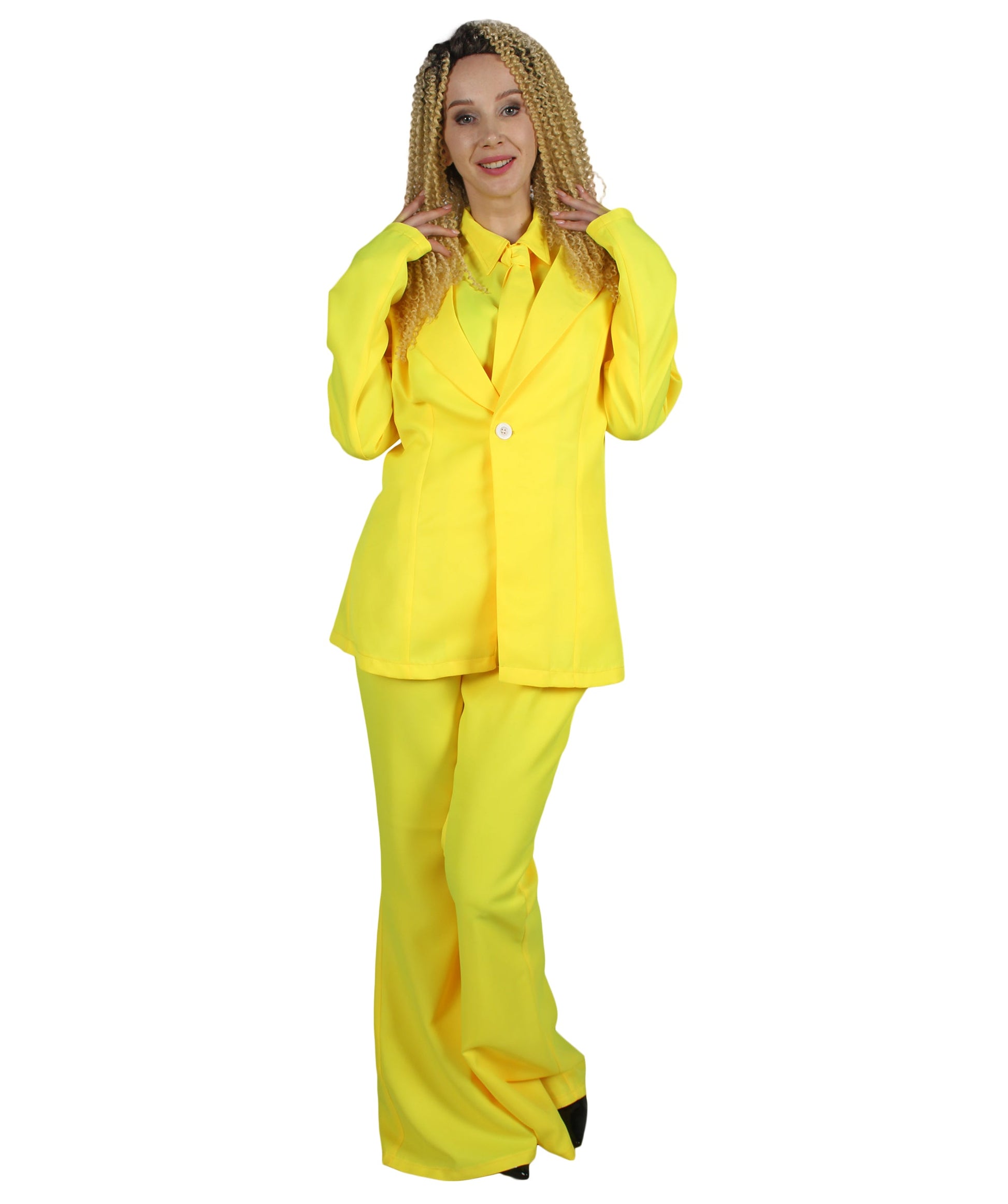 So, what are you waiting for? Make a statement and enter the limelight with our Adult Women’s Deluxe Yellow Party Suit Costume.