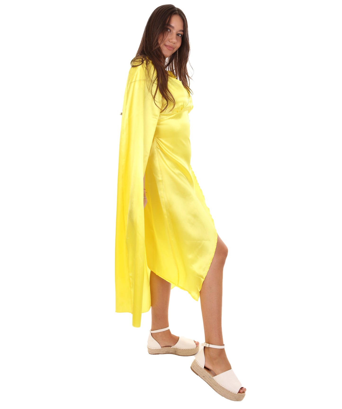 Notable Features of Yellow V-Neck Dress with Cloak: