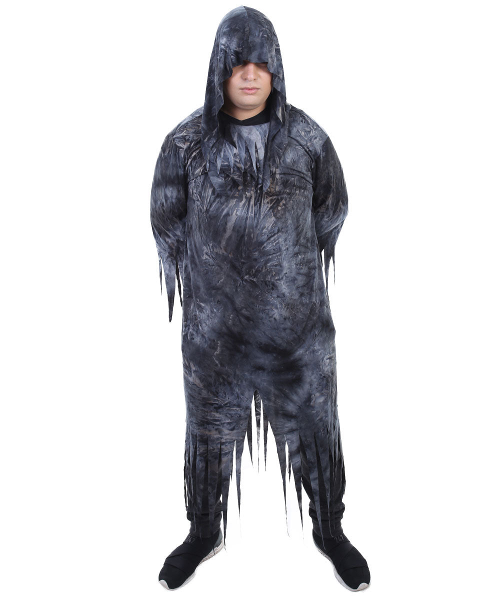 Embrace the nightmarish realm of the undead with our Zombie Nightmare Scary Costume! This grey Halloween costume is perfect for those seeking a spine-chilling look. The costume includes a hooded robe that drapes eerily over your body, adding a touch of mystery and horror to your appearance. It's tattered design and distressed details create an authentic zombie aesthetic that will send shivers down spines.